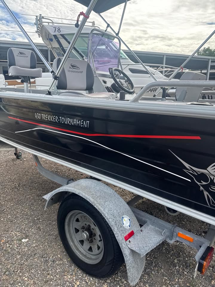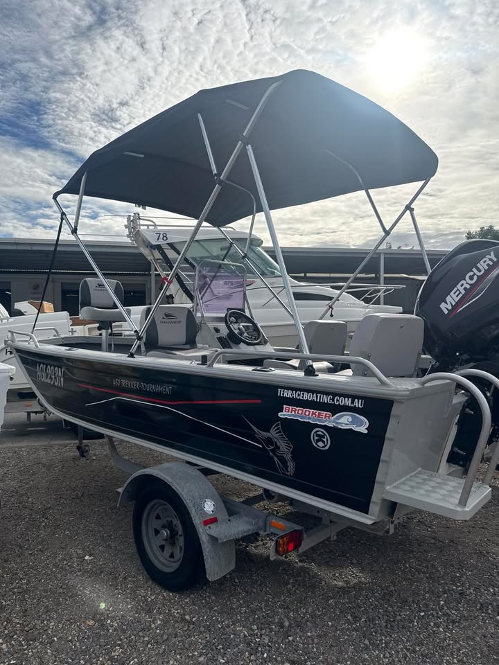 Get serious about fishing in this 430 Brooker Trekker Tournament 2011 — a purpose-built aluminium fishing boat designed for stability, practicality and performance in estuaries and inland waterways.
