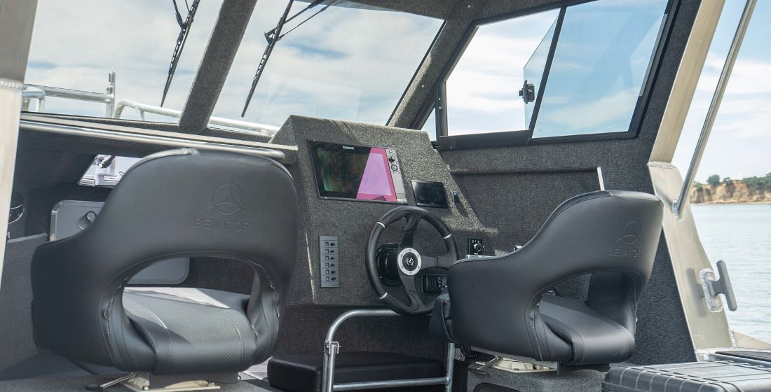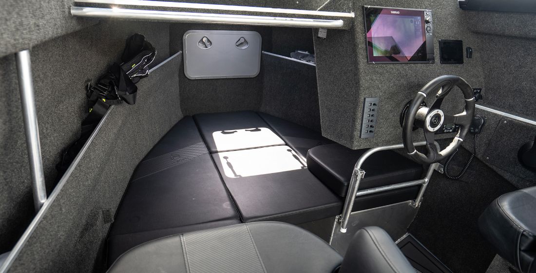 Inside, the layout makes the most of available space. Back-to-back seats and squabs in the front cabin offer comfortable seating for passengers. A longer fish bin stores even the largest catches with ease. The interior gives anglers room to work, divers space to prepare, and families space to relax. Smart details like under-seat storage and grab rails make day trips easier and more convenient.