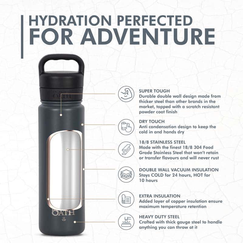 Order your Outdoor Oath 700ml Stainless Steel Bottle – Eastern Grey today and experience the perfect blend of durability, style, and temperature retention.